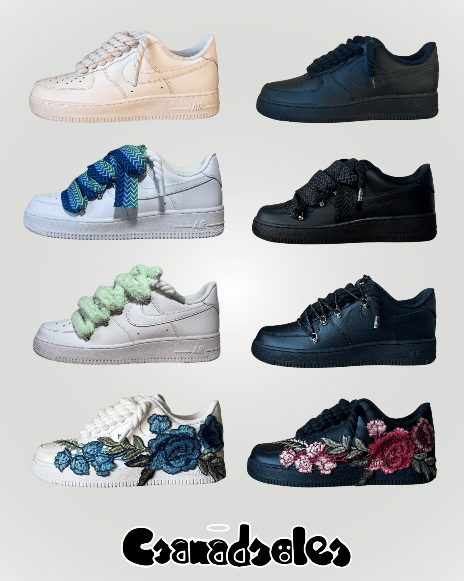 A legnagyobb odafigyeléssel, minőségi eszközökkel egyedileg elkészített Rope Lace Air Force modellek.